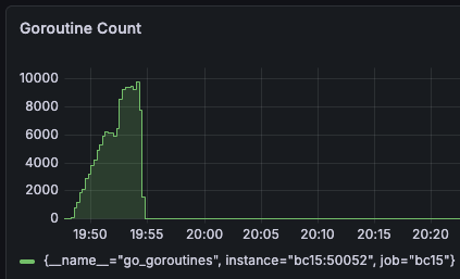 In comparison with the previous goroutine count, it was reduced from 35000-40000 to 1000-2000.