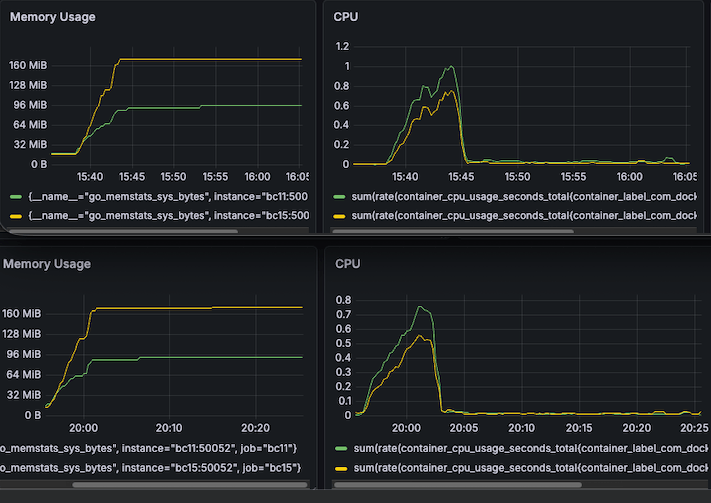 CPU usage is reduced a bit from from 0.8 to 0.5 roughly (Yellow line).